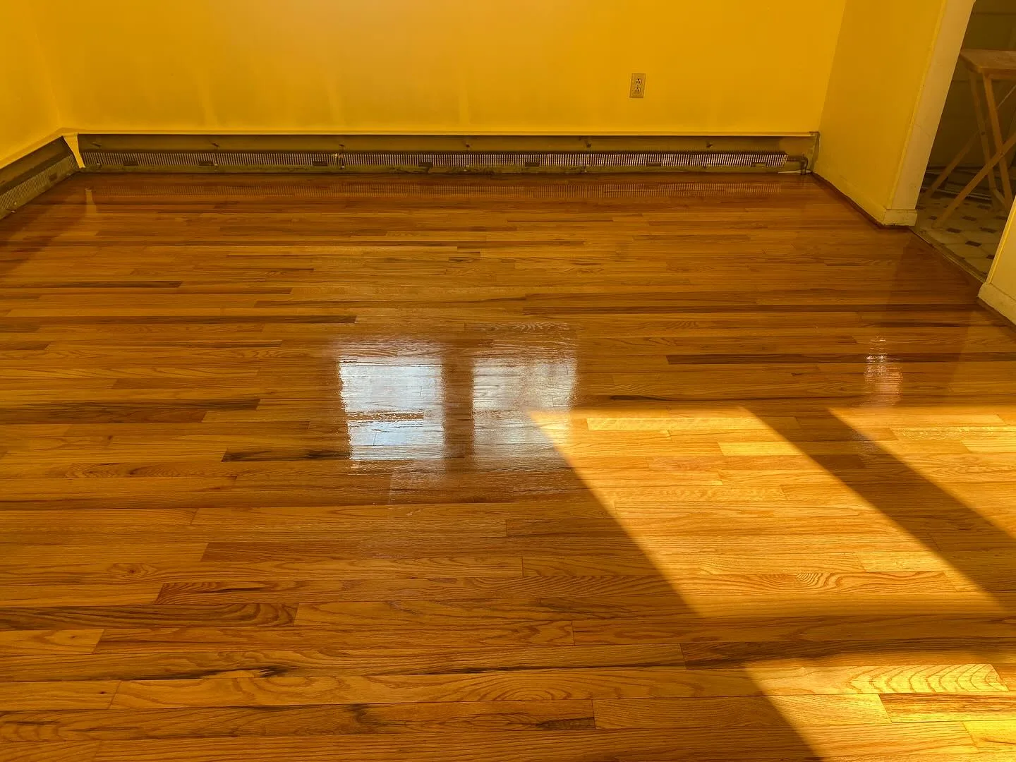 This project documents a hardwood floor refinishing process carried out on floors that had been hidden beneath carpet for many years. From the beginning, the focus was on revealing the original wood surface and assessing its condition after long-term coverage. Next, the floors were sanded to remove adhesive residue, surface damage, and uneven coloration. As a result, a natural polyurethane finish was applied to protect the wood and restore a consistent appearance. Overall, the hardwood floor refinishing process returned durability, clarity, and functionality to the original flooring.
