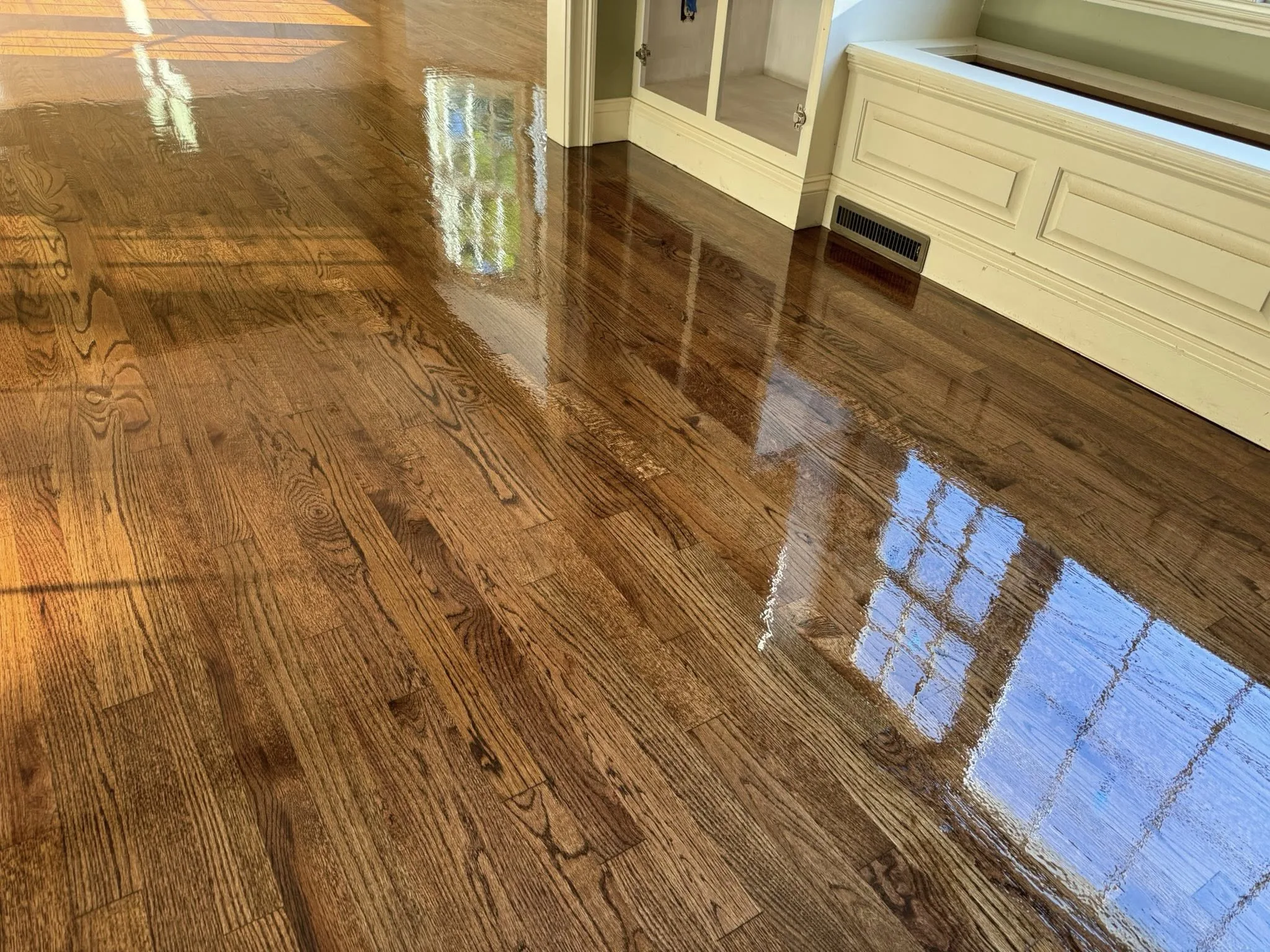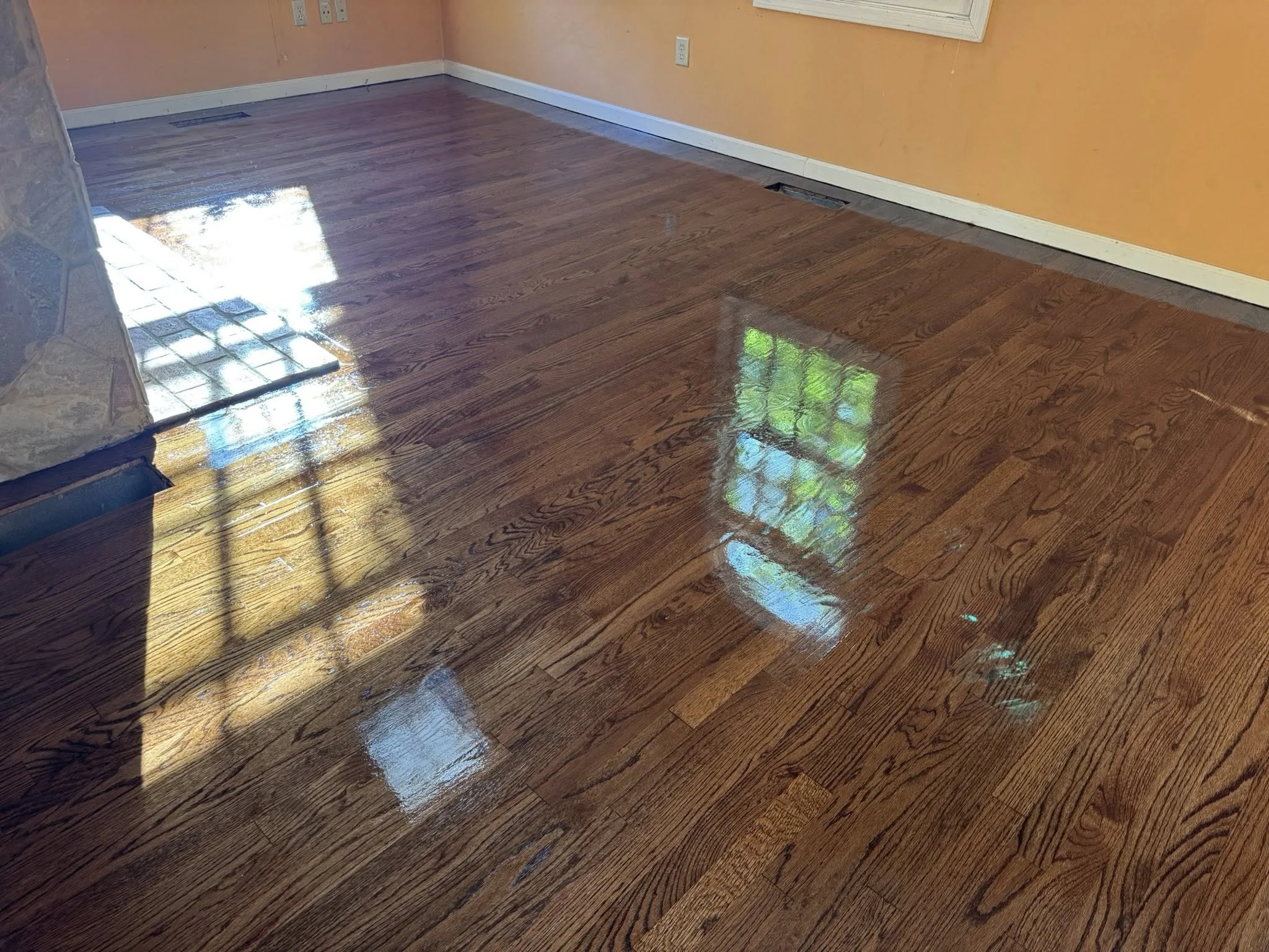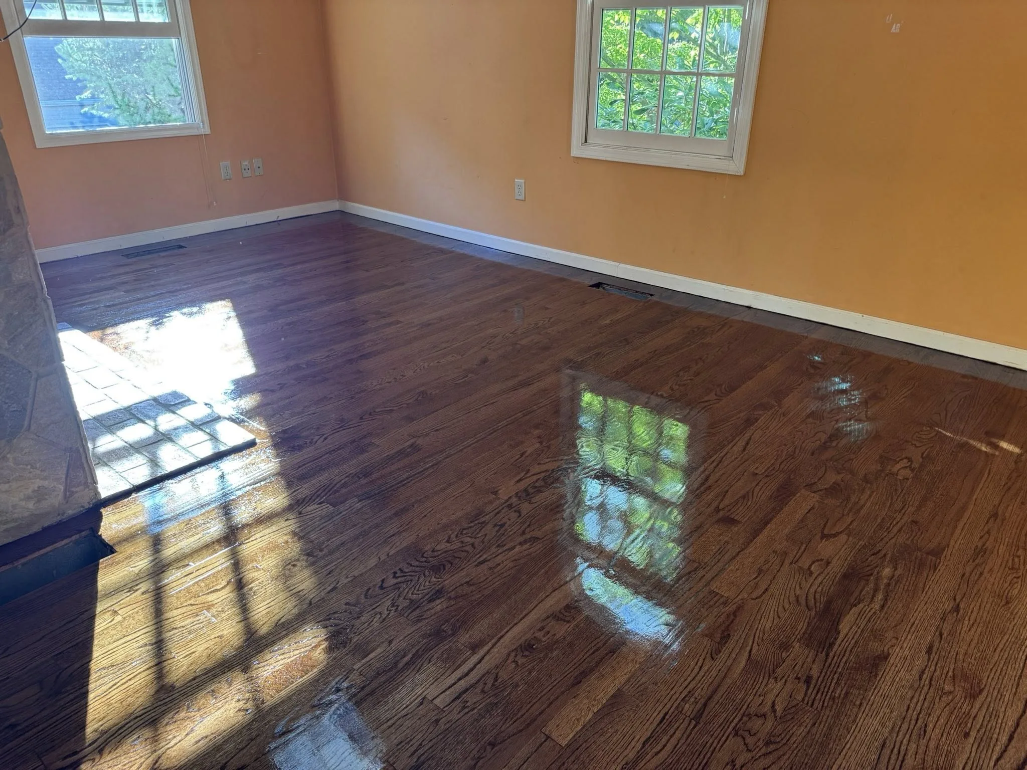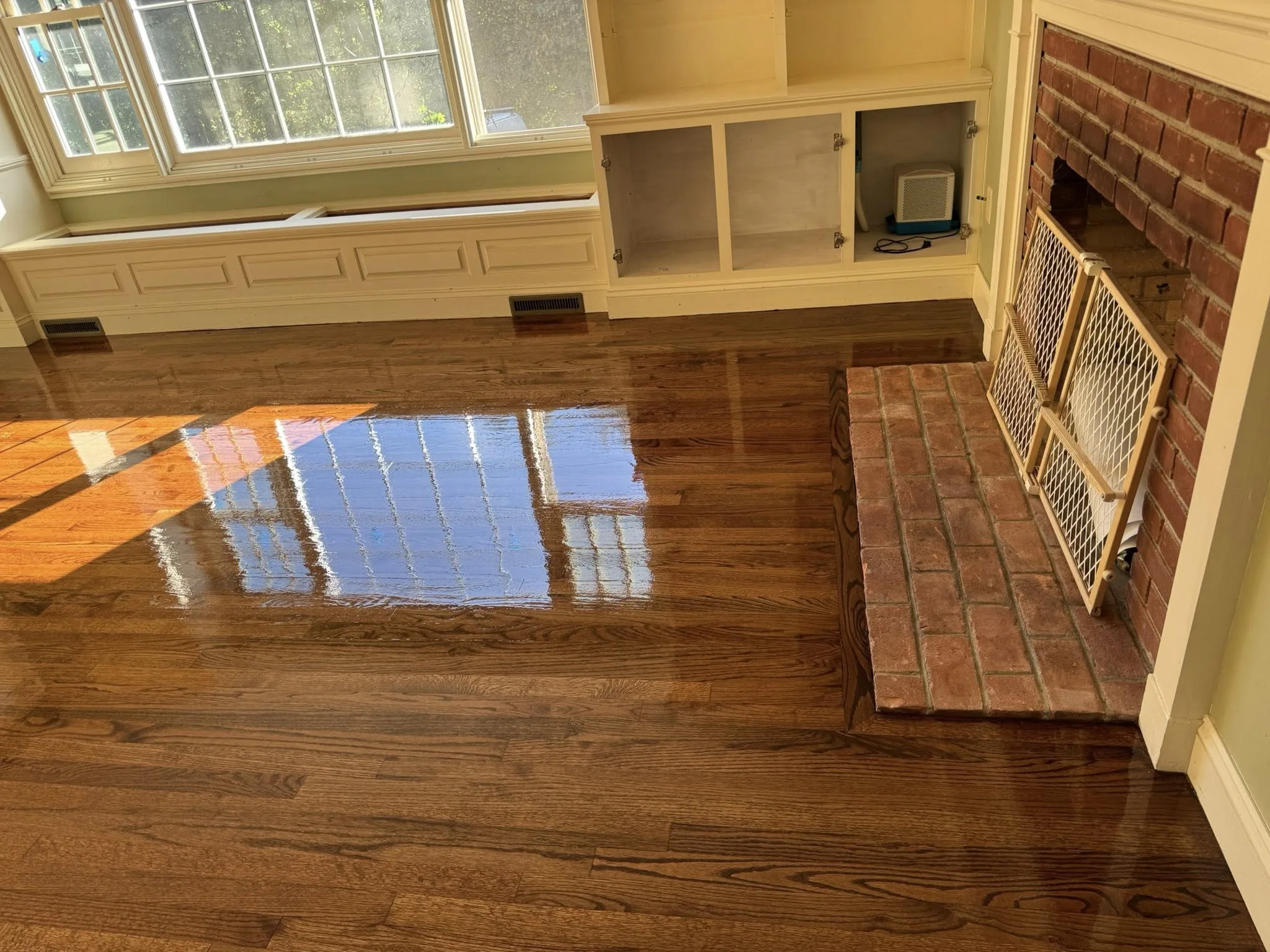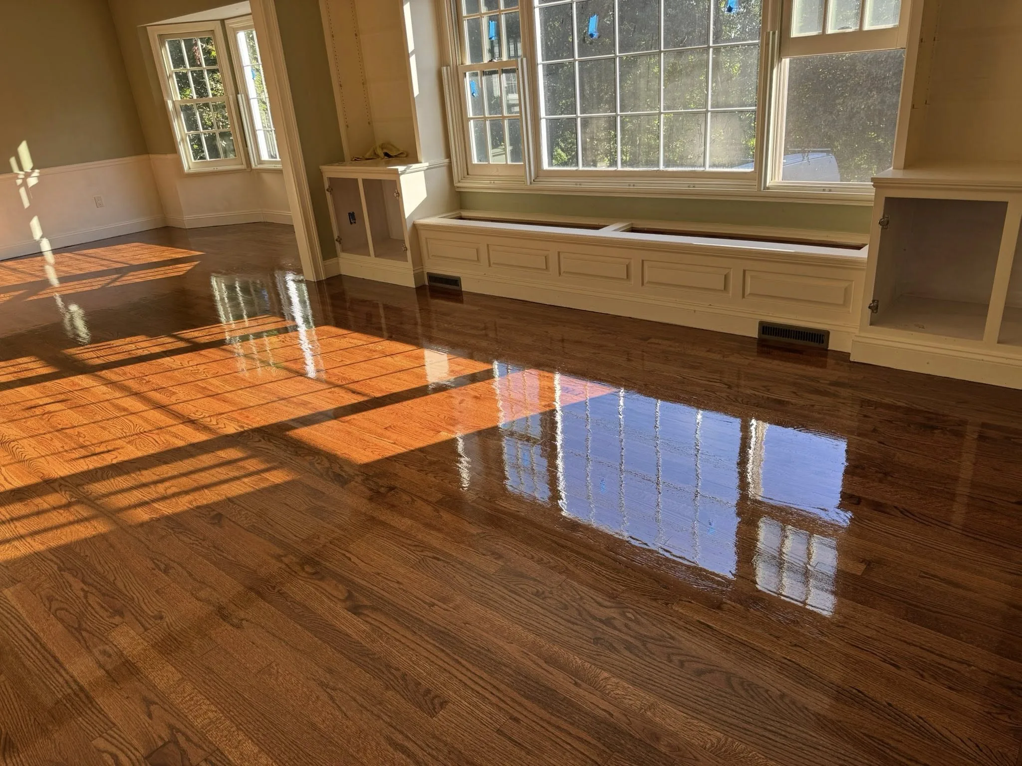 This project focused on professional hardwood floor refinishing throughout interior living spaces, and the process restored the wood surfaces to a smooth, even finish. The work reduced visible wear, enhanced the natural grain, and increased light reflection across the floors. As a result, the refinishing created visual continuity between rooms while maintaining the original character of the hardwood flooring.